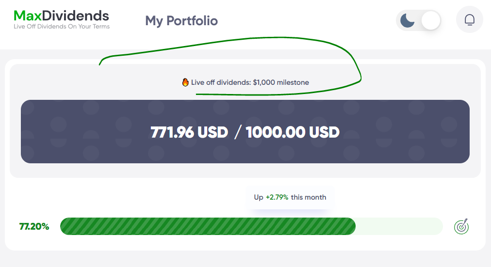 By the way — have you checked out our latest little update? You can now name your goals and share your progress directly in the MaxDividends community chat.
