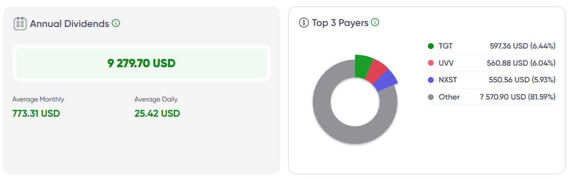 - Annual Dividends: ~$9,567 (+$83 vs last week)